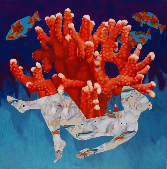 The title of this painting is Red Coral for obvious reasons, I love red corals for there color and the shapes they have.In the composit...