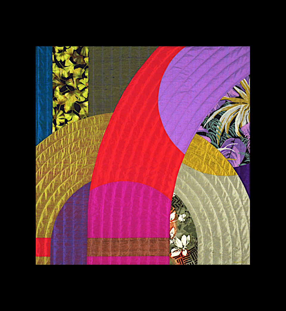 Etude #2 Art Quilt by Marilyn Henrion: Wall hanging, silk and cotton, hand pieced, hand quilted. Anodized aluminum hanging bars included (invisible when hung). Marilyn Henrion celebrates te...