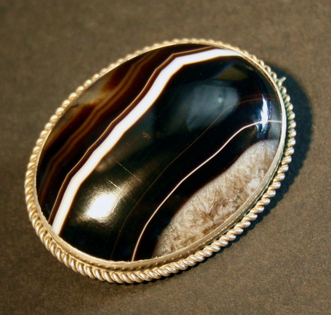 Antique large agate oval and Silver brooch pendant