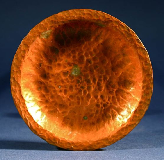 These hammered copper little nine plates look like they were made by famous San Francisco Bay Area metalsmith, Dirk van Erp. This classic "Hammered" design was created in the early 20th...