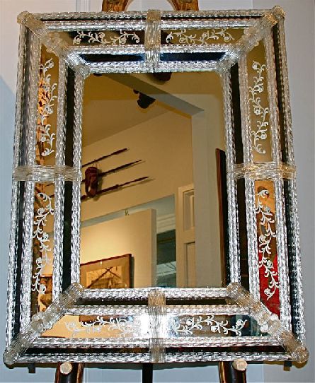 This Venetian glass mirror is in Excellent Classic Etched Motif, a fabulous design. Italian. A very rare and beautiful mirror, of hand-blown glass, with bevelled floral designs, circa 192...