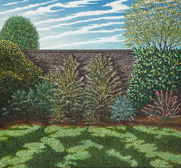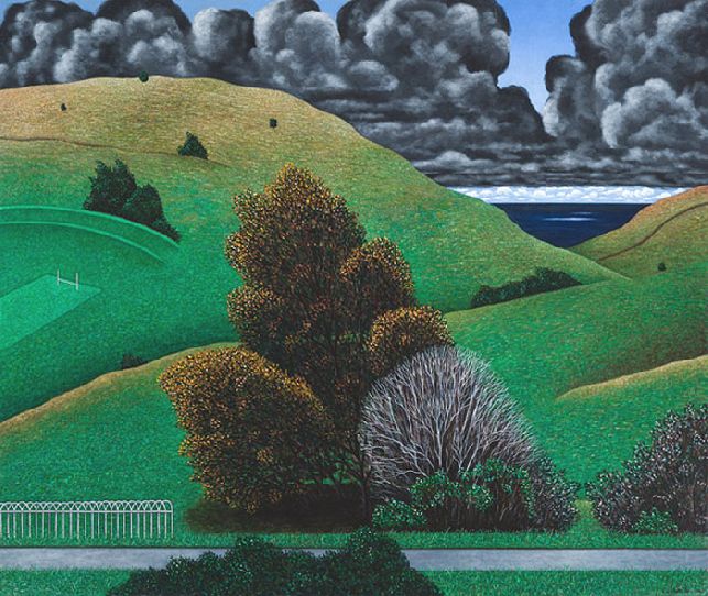 Artist Jerry Ross: This painting shows the artist's adaptation of the Italian I Macchiaioli concept of "macchia" or stain, the burnt sienna underpainting that establishes the central design....