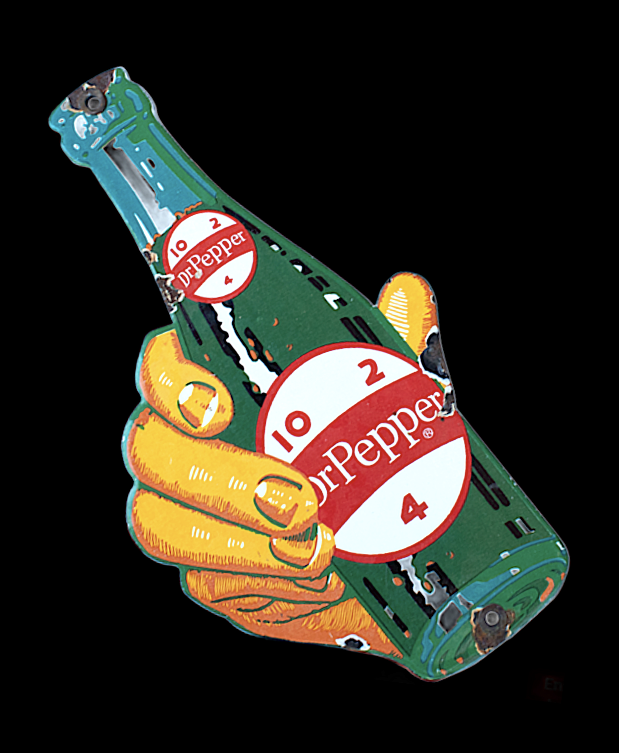 Dr Pepper 10 2 4 Sign: Vintage Porcelain Hand-on-Bottle Die Cut
