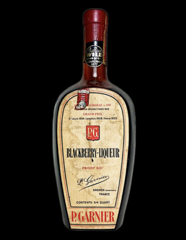 Rare Vintage P. Garnier Blackberry Liqueur - 1930s Whiskey Spirits, 60 Proof