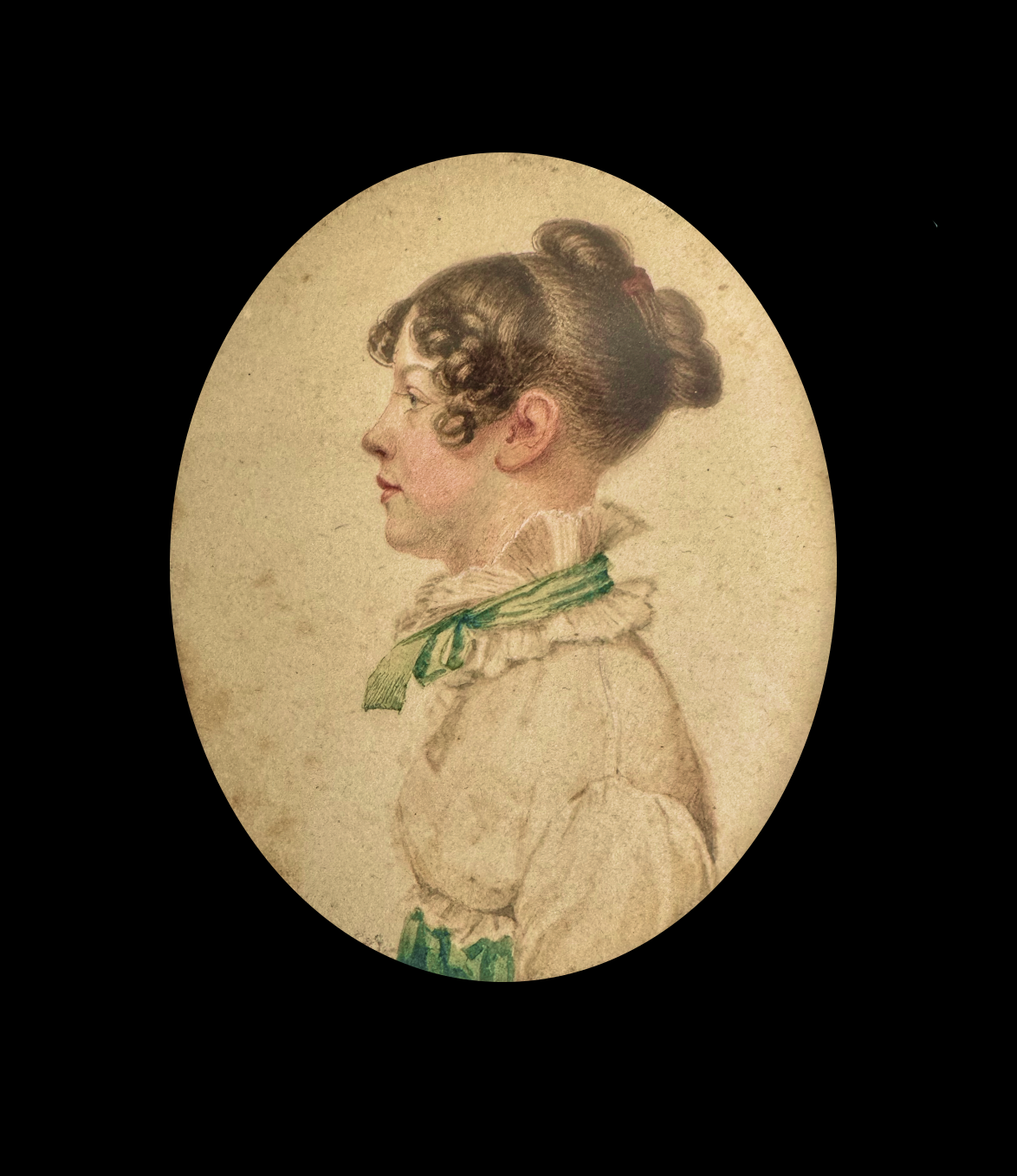 Extremely Rare Antique Early 19th-Century Watercolor Miniature Profile Portrait of a Young Girl