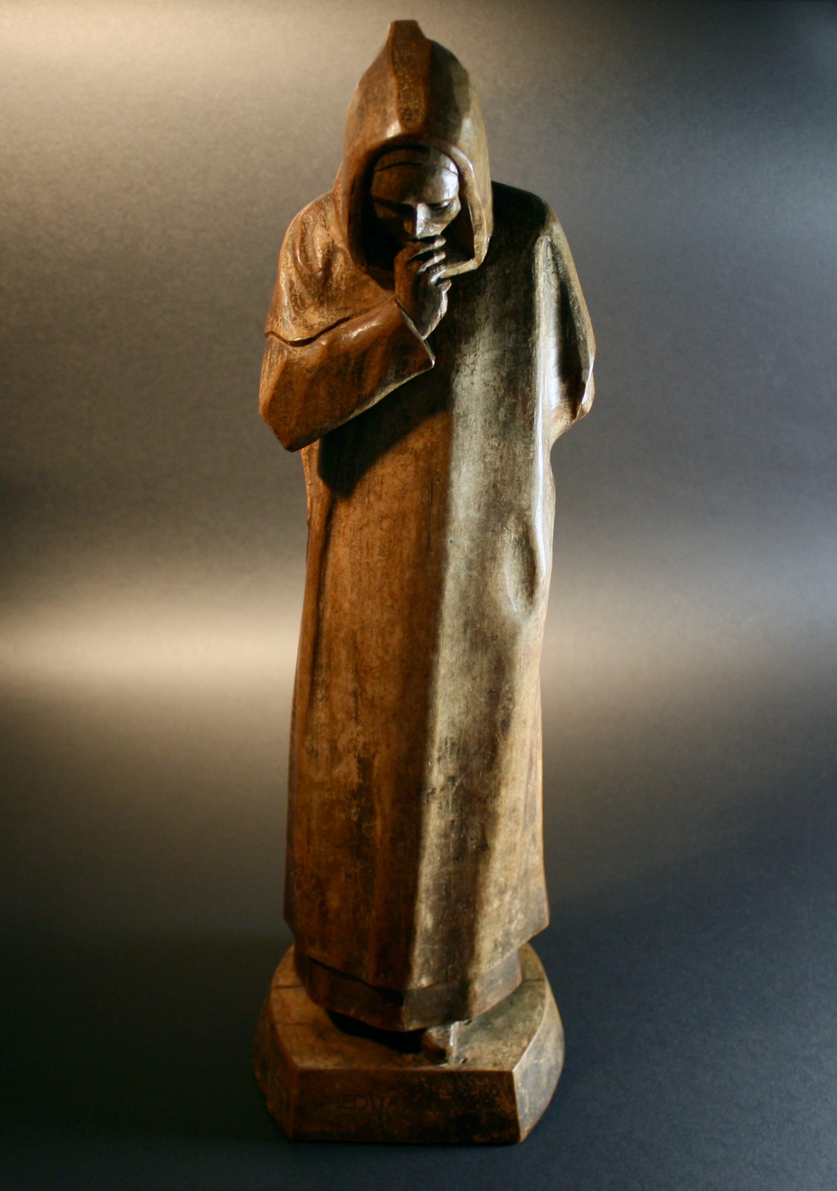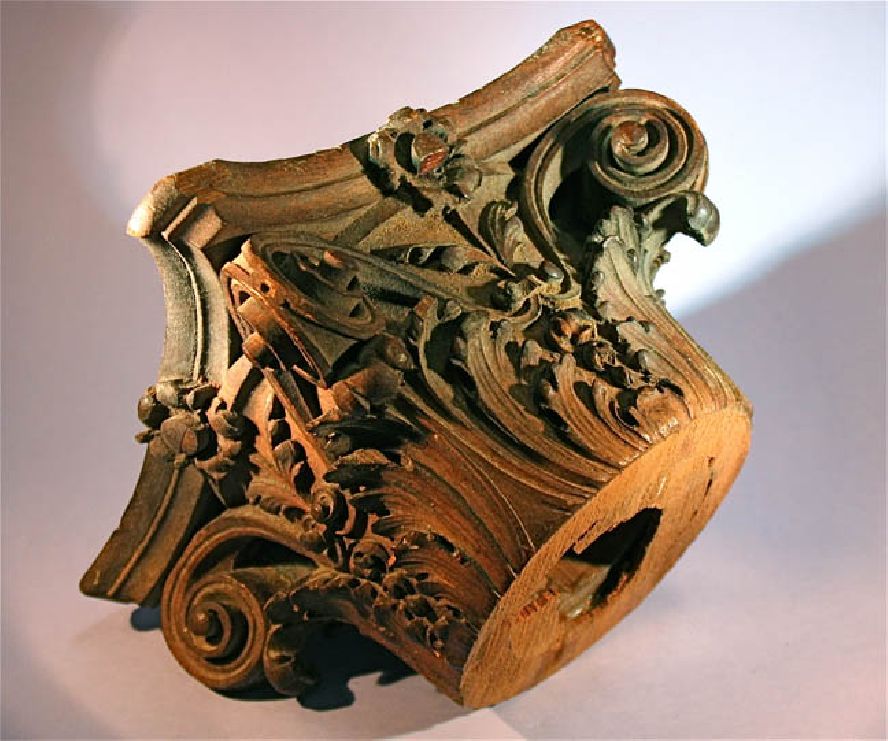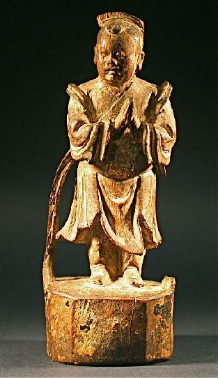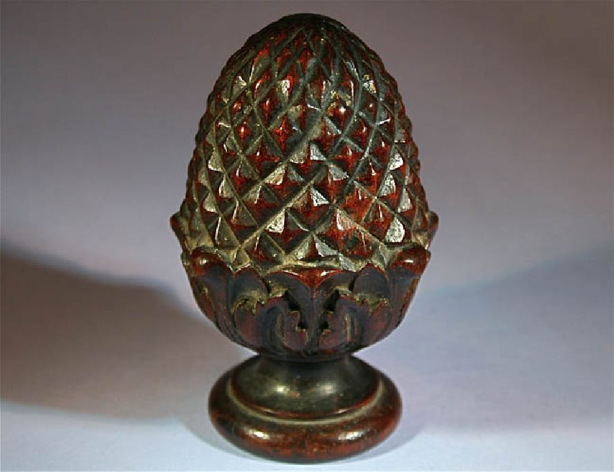 A vintage carved wood finial that was mounted on a wood stand at one time around the 19th century.