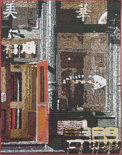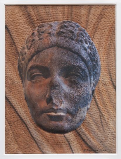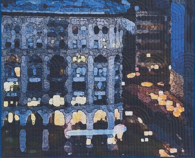 Matidia by artist Marilyn Henrion. Mixed media textile relief: Digital photography, inkjet printing on silk and cotton, fusing, trapunto, hand quilting. Double matted and framed. (work is...