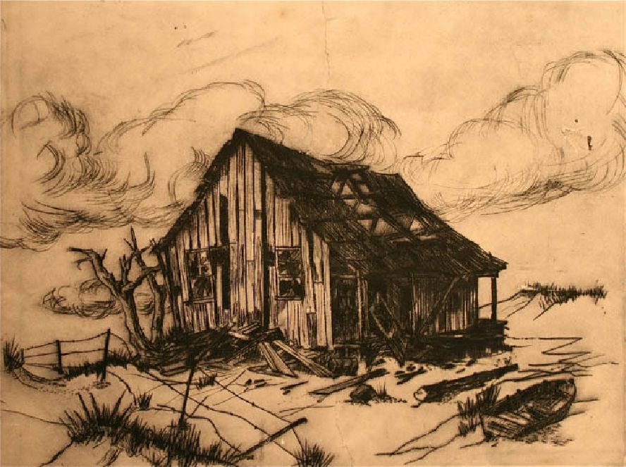 A Metal Etching of a old farm home. This is signed by the artist. may be considered as one of the founding works on paper. lithograph, 1920s to 1930s, a fine impression. A Metal Etching by a...