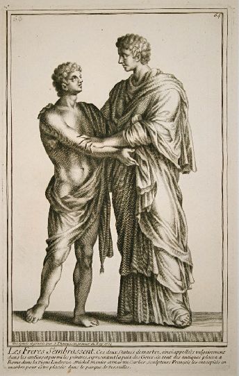 Black and white antique copper etching of a figure mythology print drawing. Complete and authentic universal work. A massive folio volume of pages on hand made paper, this was from a popula...
