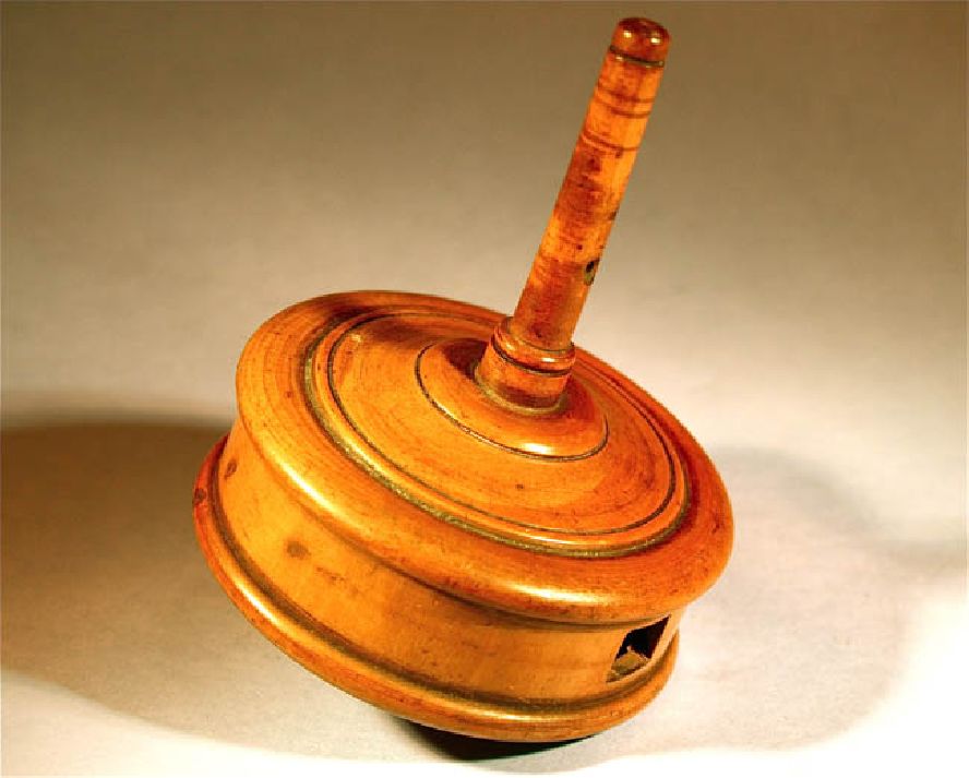 A 19th Century box wood victorian toy whistle top, an ancient toy, that provides endless hours of fascination. Handcrafted in limited quantities throw out the world, old wooden spinning tops are our best sellers when found. The tops are made from a variety of woods native to Europe and produced in unique wooden color combinations. So beautifully balanced, it spins for minutes at a time. And, when finished spinning, the top is worthy of displaying in a glass case. A clever conversation piece, display this beautiful little work-of-art atop a mirror on your coffee or dining room table for your next dinner party, or display it on top of your desk and use it as a stress reliever throughout the day. Perfect for someone who has everything. They are ideal for birthday parties (kids and adults alike), or a corporate gift.