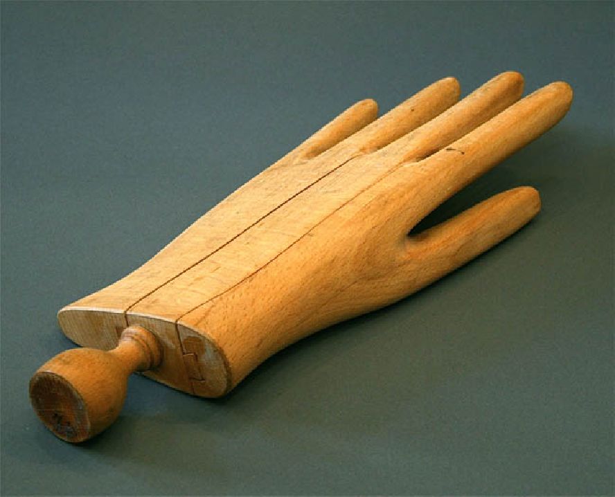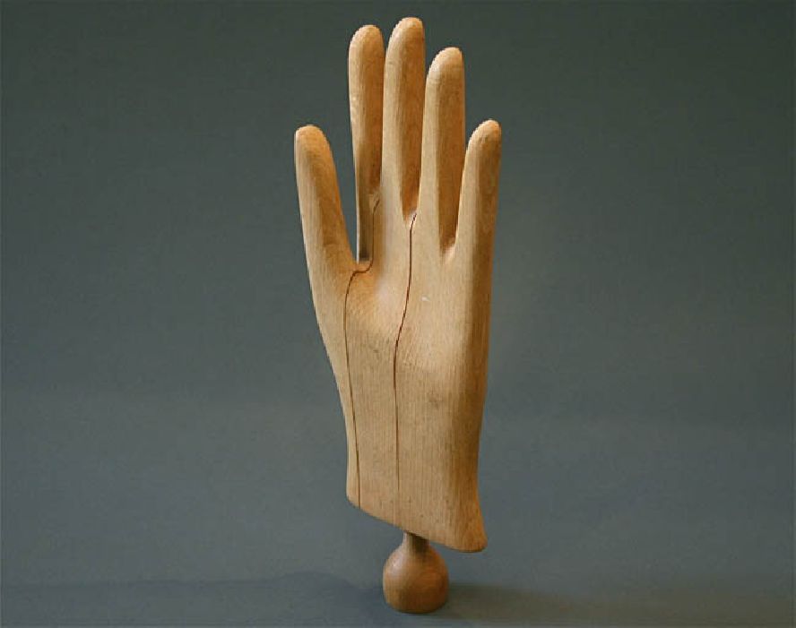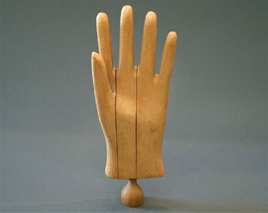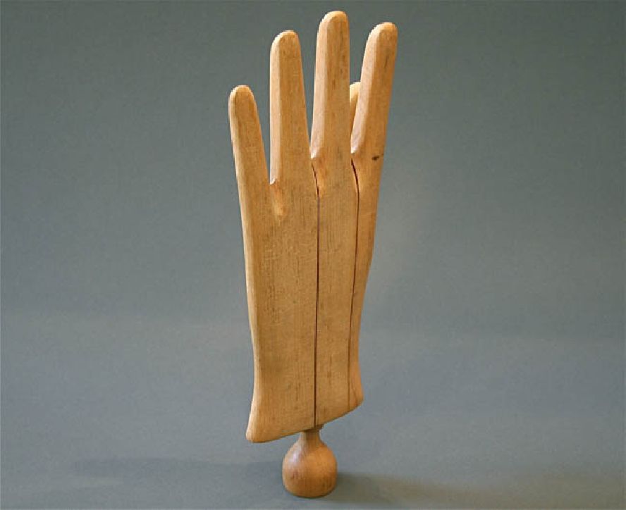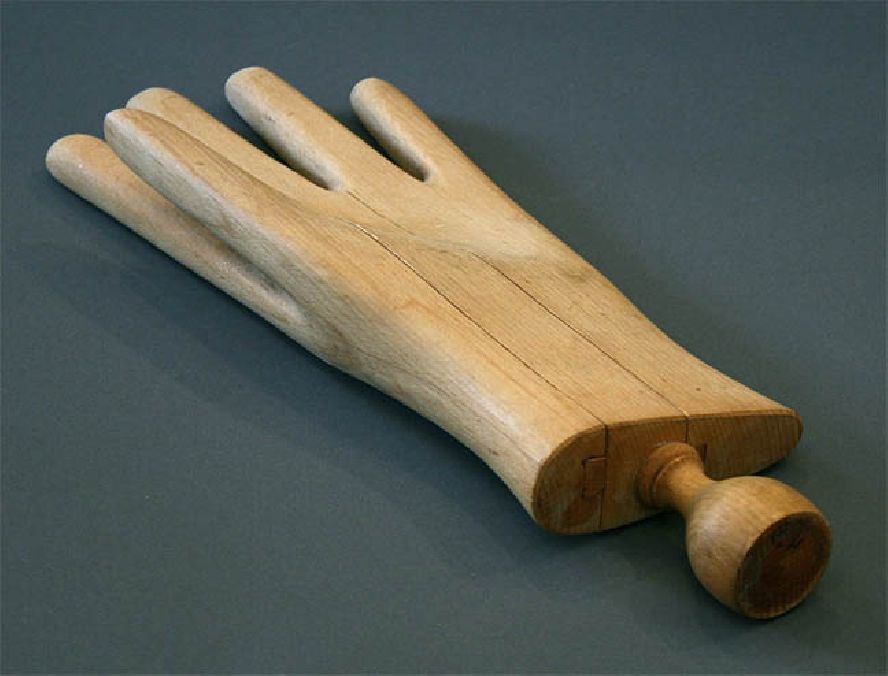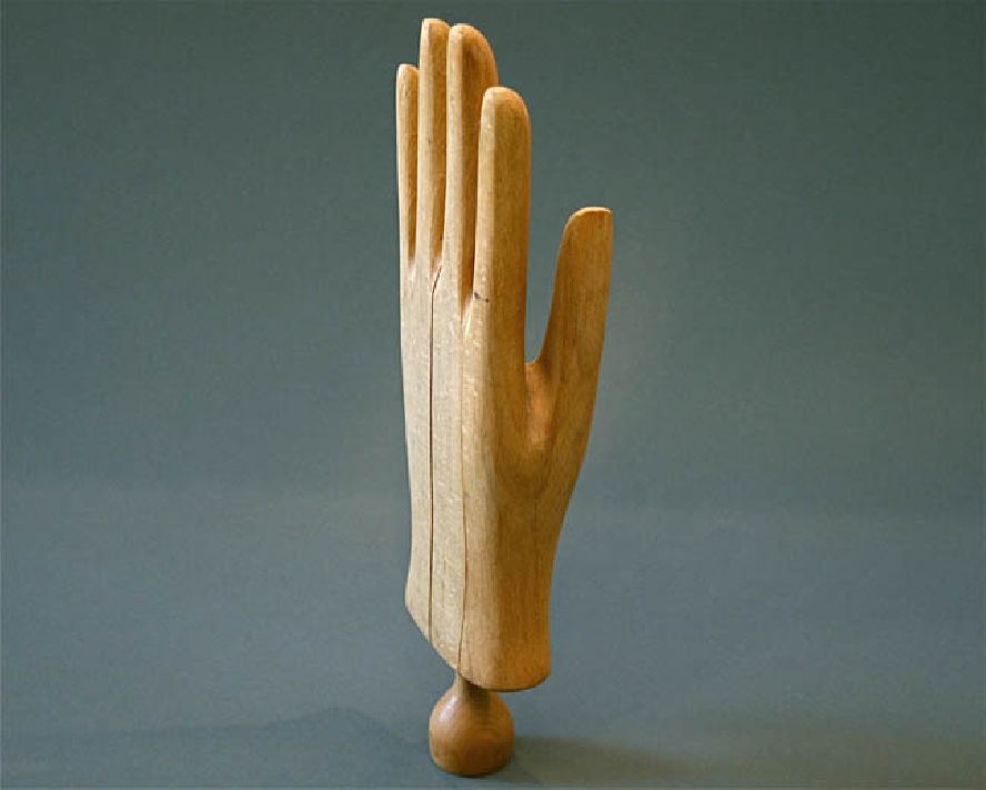Title: Antique Articulated Wooden Carved Display Glove Hand Tool