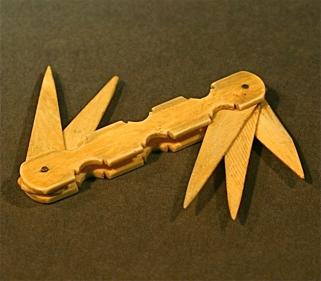 Title: Antique hand carved five pick ivory pocket tooth cleaner
