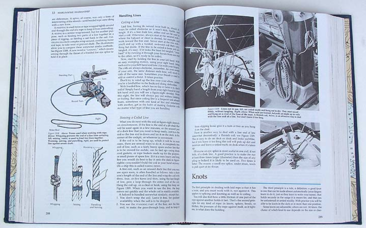Elbert S. Maloney, "Chapman's Piloting, Seamanship & Small Boat Handling," 1983, Hearst Marine Books, New York. 610 pages exclusive of the index, hardcover. This monumental book basically contains everything you need to know to become the captain of a yacht! There are 27 chapters with 6 appendices. Copiously illustrated. Just a few of the titles are: Nautical Terms, Equipment for Boats, Rules of the Road, Seamanship, Weather, the Mariner's Compass, Aids to Navigation, the Nautical Chart, Tides and Current, Piloting, Boat Management, etc., etc. An absolute wealth of information contained in a single large-format book! Excellent condition.