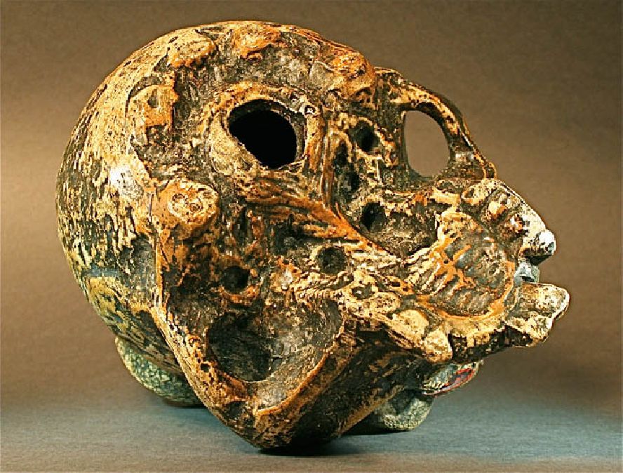 Title: Decorative Japanese Death Skull & Snake Pottery Grave Sculpture