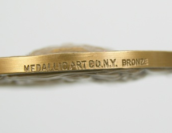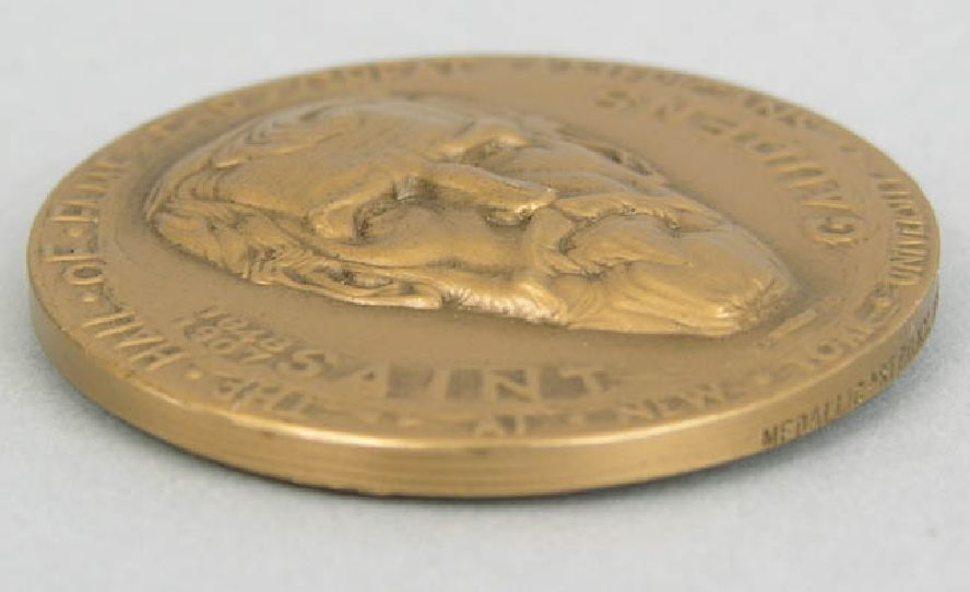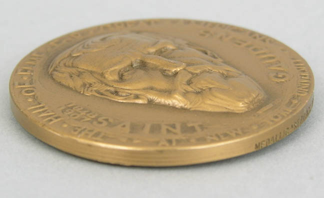 Bronze Coin Medallion Gilt Bronze medallion Commemorating August Saint-Gaudens Produced by Medallic Art Company of N.Y. dated 1971 for the Hall of Fame for Great Americans at New York University. A 3-D portrait relief of Saint-Gaudens, verso with a high relief rendition of a sculptor. Approx. 1-3/4" in diameter. This medal was sculpted by artist Stanley Martineau, this is part of a series of 94 medals.