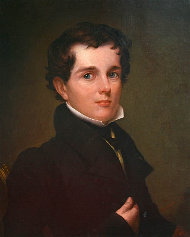 This is a young man painted in oil, from the 1800s -- a portrait and a one-of-a-kind work of art. Portrait painting is a genre in painting where the intent is to depict the visual appearance of the subject. Portraitists create their work by commission, for public and private persons, or are inspired by admiration or affection for the subject. Portraits are often important state and family records, as well as remembrances. Historically, portrait paintings have primarily memorialized the rich and powerful. Traditional oil painting techniques often begin with the artist sketching the figure onto the canvas with charcoal or a "clean", which is thinned paint. Oil paint can be mixed with turpentine or artist grade mineral spirits or other solvents to create a thinner, faster drying paint. Then the artist builds the figure in layers. A basic rule of oil paint application is 'fat over lean.' This means that each additional layer of paint should be a bit oilier than the layer below, to allow proper drying. When looking at original oil paintings, the various traits of oil paint allow one to sense the choices the artist made as they applied the paint. Traditionally, moving paint was accomplished with paint brushes, but there are other methods, including the palette knife, the rag, and even directly from the paint tube. Oil paint remains wet longer than many other types of artists' materials, enabling the artist to change the color, texture or form of the figure.