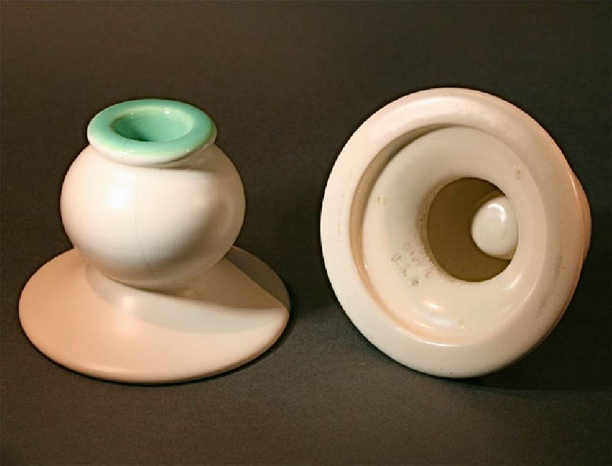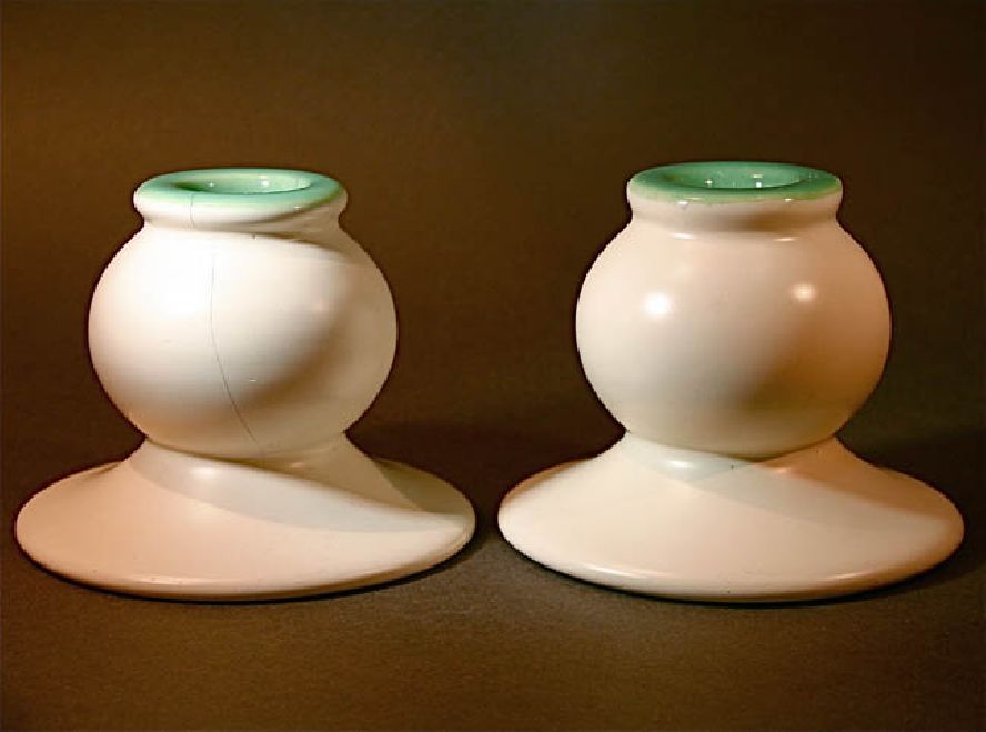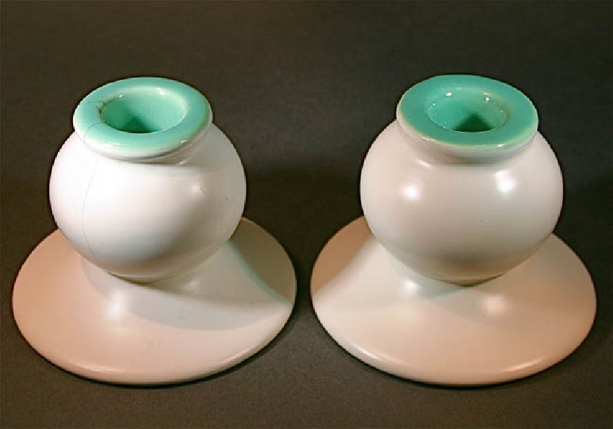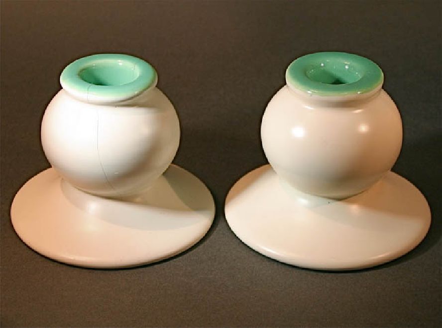 Title: Pair of White and Green Art Deco Ceramic Candlesticks