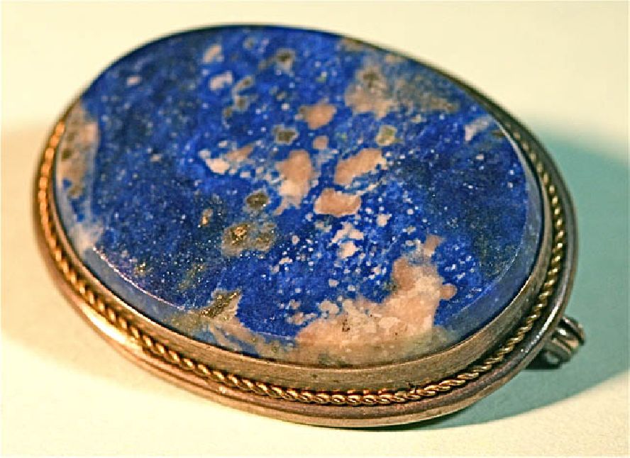 Lapis lazuli (sometimes abbreviated to lapis) is a semi-precious stone prized since antiquity for its intense blue color. Lapis lazuli has been mined in the Badakhshan province of Afghanistan for 6,500 years, and trade in the stone is ancient enough for lapis jewelry to have been found at Predynastic Egyptian sites, and lapis beads at neolithic burials in Mehrgarh, the Caucasus, and even as far from Afghanistan as Mauritania. Lapis lazuli is a rock, not a mineral: whereas a mineral has only one constituent, lapis lazuli is formed from more than one mineral. Lapis lazuli usually occurs in crystalline marble as a result of contact metamorphism. The finest color is intense blue, lightly dusted with small flecks of golden pyrite. There should be no white calcite veins and the pyrite inclusions should be small. Stones that contain much calcite at all or too much pyrite are not as valuable. Patches of pyrite are an important help in identifying the stone as genuine and do not detract from its value. Often, inferior lapis is dyed to improve its color, but this is often a very dark blue with a noticeable grey cast, may also appear as a milky shade.
