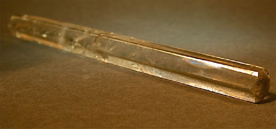 Magnificent antique crystal quartz, eight inch flat finished ruler was originally meant for the engineer's desk. This beautiful hand-crafted drafting tool is a superior aid in measuring, drawing straight lines, and cutting and scoring with a blade; but maybe as important, the quartz is said to bring good fortune. Regarded as a lucky amulet, clear quartz exudes mystic beauty. The eight-inch ruler has a variety of sided scales. Crystal quartz rulers are rare and much preferred over the wooden ones -- for accuracy as well as for luck.