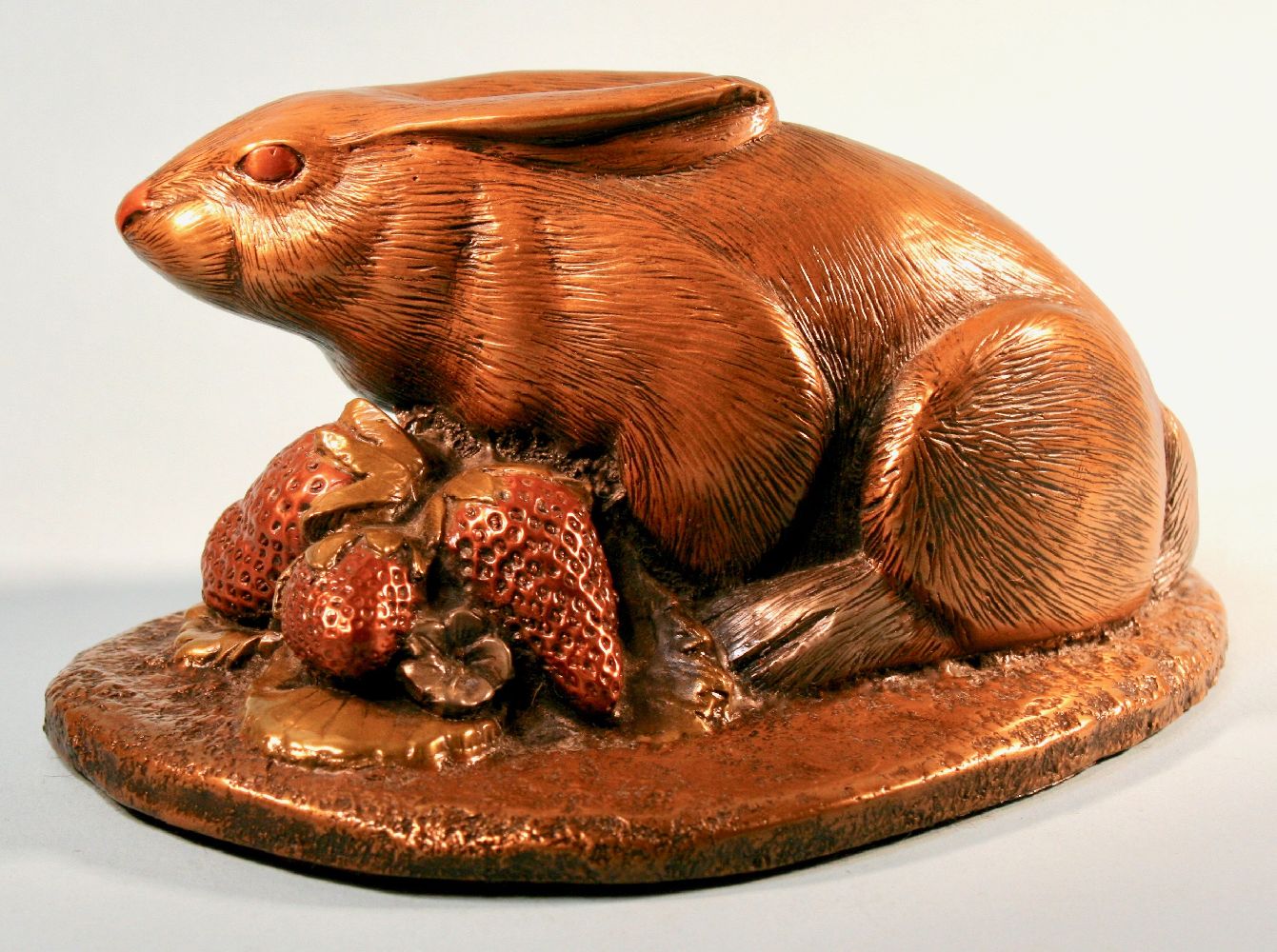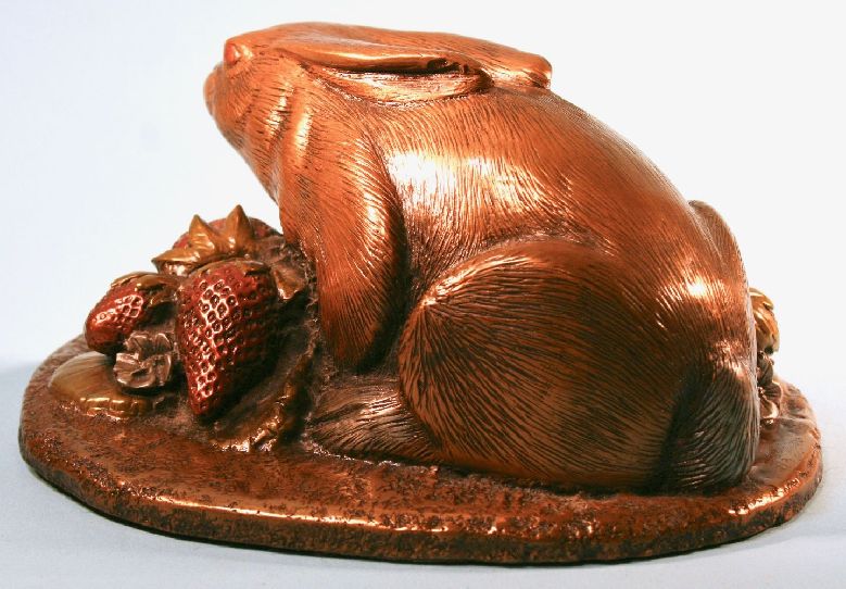 A magnificent and Important Work of craftsmanship. Japanese silver, copper and bronze rabbit in a strawberry patch, elaborately inlaid. Sculpture. Contributed to Kanazawa Doki Kaisha. His work was well known for ornamented gold, silver, And copper inlay. Style, Was Copy By / David Chesney Studios. MADE IN 1991 BY DAVID CHESNEY STUDIOS. VERY DETAILED MADE WITH COPPER, BRASS AND SILVER or PEWTER? WEIGHS 3 LBS. A superb example of Kaga metalwork. The Miyazaki Kanchi family worked for the Maeda Daimyo in Kanazawa. This is a masterpiece. After an exhaustive search of pieces made by Kanazawa Doki Kaisha in private collections and museums in Japan and abroad, in all probability, this sculpture was an important and magnificent example of casting. It's possible? Our metalwork consultants in Japan have indicated that it would have taken a team of artisans over a year to complete it. The artist David Chesney was a California artist for over 35 years. Well known for his mixed metal sculptures. known for highly detailed and collectible works. He passed away in 2015. The Condition: Very good showing light patina. Excellent Condition. Please feel free to ask any related questions.