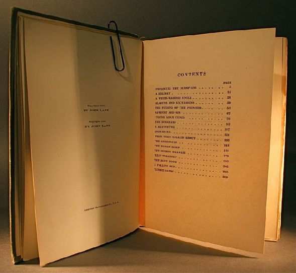 Dream Days by Kenneth Graham, Illustrated by Maxfield Parrish London/New York: John Lane, 1902.8 vol. Hardbound in olive green cloth with printed pictorial cover. Deckled paper edges and gilt ruled top edge. Illustrations with tissue guards. Many b&w illustrated devices. 227 numbered pages, printed end papers and promotional pages by publisher at end. Condition: Wear to binding and spine. Pasted down bookplate on fly page. Published by John Lane/The Bodley Head ~ 1900. Written by Kenneth Grahame, with beautiful young adult illustrations by the great Maxfield Parrish. Condition: Spine a bit dulled, top edge dusty; 1" tear to top of rear hinge, Christmas inscription from 1908 to front free end paper, a few plates with faint foxing to margins, otherwise very good or better, with bright covers. "The Golden Age," the favorite amongst Mr. Kenneth Grahame's favored books, has Maxfield Parrish's illustrations reproduced in photogravure. Published in London and New York by John Lane: The Bodley Head. The book is hardbound in pictorial dark green cloth illustrated in four-colors, with gilt titles on the front and spine, and the top edge is gilt as well. Measuring 6.5" x 8.25", there are 252 (+12) pages. The 18 b&w illustrations are on a high quality rag paper, each having its own vellum protector sheet printed with the caption, and then bound-in. The condition is Very Good, with bumping and rubbing at the corners and edges. The binding is a bit loose, but the hinges are fully intact. The page edges are deckled. Endpapers are illustrated. Otherwise, the interior pages are clean, tight, bright and complete. Comes in our mylar protective cover. The first edition, published by The Bodely Head in 1895, was not illustrated. This edition is an improved edition from the first illustrated in 1899. The Bodely Head published Dream Days in 1902 with photogravure illustrations. They were so pleased with the results they re-issued "The Golden Age" using the same technique. Nineteen full-page illustrations with caption-printed tissue. There are also twelve tailpieces, all illustrated by Maxfield Parrish. The book is a collection of childhood reminiscences told as allegory. Beautifully embossed multi-color castle scene on front cover. Title, author and illustrator on cover and spine.