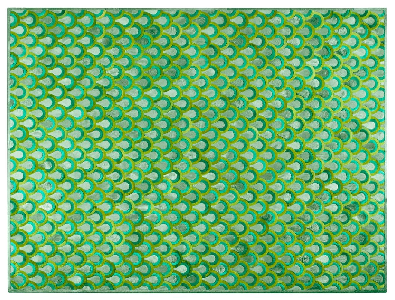 Title: Designer Rug SHIFT MINT, TEAL, & LIME Made From Cowhide