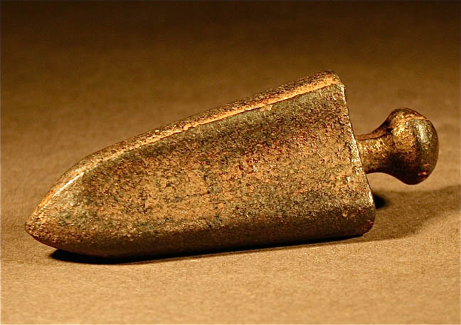 This extremely simple and sensitive old tool is to make and find a vertical line. It can be carried in a small tool box for easy use in the field. This has been precision machined by hand. Plumb bob or plumb line employs the laws of gravity to establish what is "plumb" (exactly vertical) - you don't need a graduate degree in physics to understand that a string suspended with a weight at the bottom will be both precisely vertical AND perpendicular to any level plane through which it passes. The plumb bob, obviously, is the companion tool to the level. A homemade plumb can consist of most any bit of string with a weight tied its end (a couple of washers, say, or a lead sinker from a fishing line. But the factory-made plumb bob has a specially designed weight. Well machined and balanced bobs have pointed tips, that makes them more precise to use.