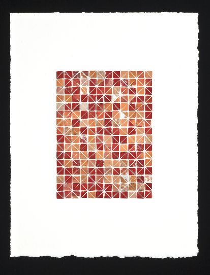 "Red Diamonds" 2009, is an original, unframed, collage on Arches paper made from discarded Marlboro cigarette packages that the artist, Robert Larson, collects on walks through urban environments. Archeology, ecology, pop-culture, and refined visual art are all seamlessly blended in Robert's process driven, conceptually charged, exploration of the urban landscape, cultural identity, and transformative visual beauty. The iconic and symbolically imbued Marlboro packages document, among other things, a collision between the man-made material world and the forces of nature. Exposure to the elements over time fades and abrades the discarded cigarette packages, inadvertently creating a dynamic palette of weathered hues, tones and textures that Larson utilizes, like a painter, to create patterned, often minimalist, works of art that addresses fundamental concerns, both current and universal.