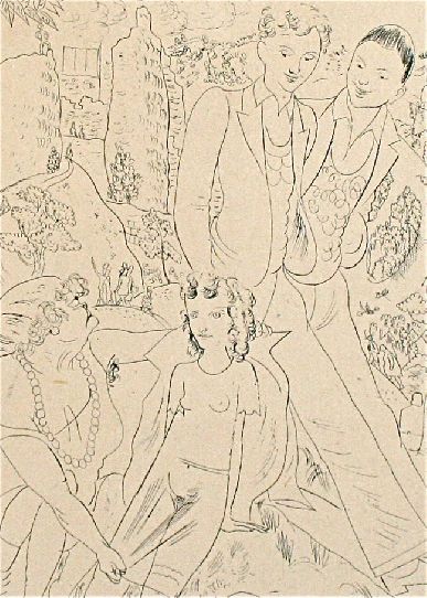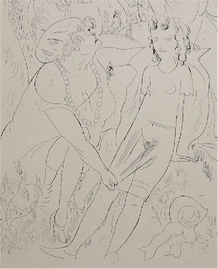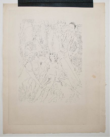 This little girl sent men’s hearts racing as her older mother is pulling down the see-through dress, very odd Sketch of a sitting nude little girl in a see-through dress. This is a beautiful antique etching. Printed on hand made paper. Full of vibrant line and strong outlines, this particular etching print depicts a little girl and her older mother sitting with two boys looking over her. Artist unknown.