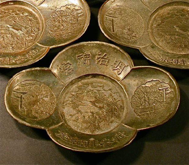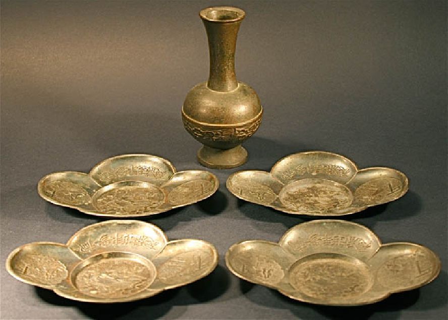 Title: Japanese Asian Handcrafted Design Bronze Vase With Four Dishes