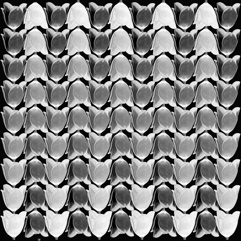 An image in the style of MC Escher of tulips by the noted New York based photographer Russ Martin. The image measures 15 inches square and is printed on 17X22 inch Epson Exhibition Fiber paper. It is print number 1 in an edition of 25 which includes two Artist's Proofs. The print was made on an Epson Stylus Pro 3800 printer using archival pigment inks. It is titled, numbered, signed, and dated on the verso. It is provided to the buyer unmounted so that it can be matted and framed to their specifications.