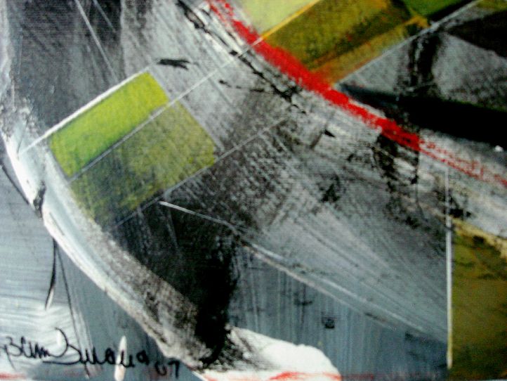 By Artist Bernard Dunaux: Last of the "Suspended" series, this work has great depth and movement. The colors and shapes are reminiscent of the 50's but the execution is more modern. The painting has a great impact especially when lit. A beautiful and skillful piece.