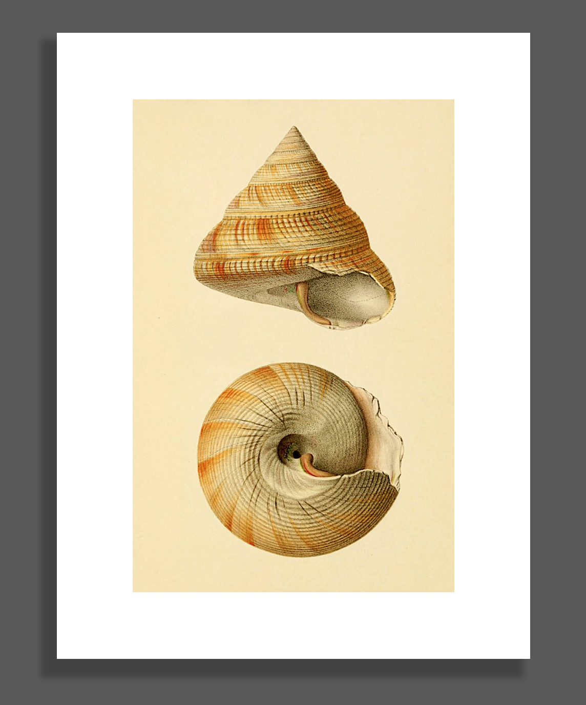 Title: Two Antique Art Print Renderings of a Seashell