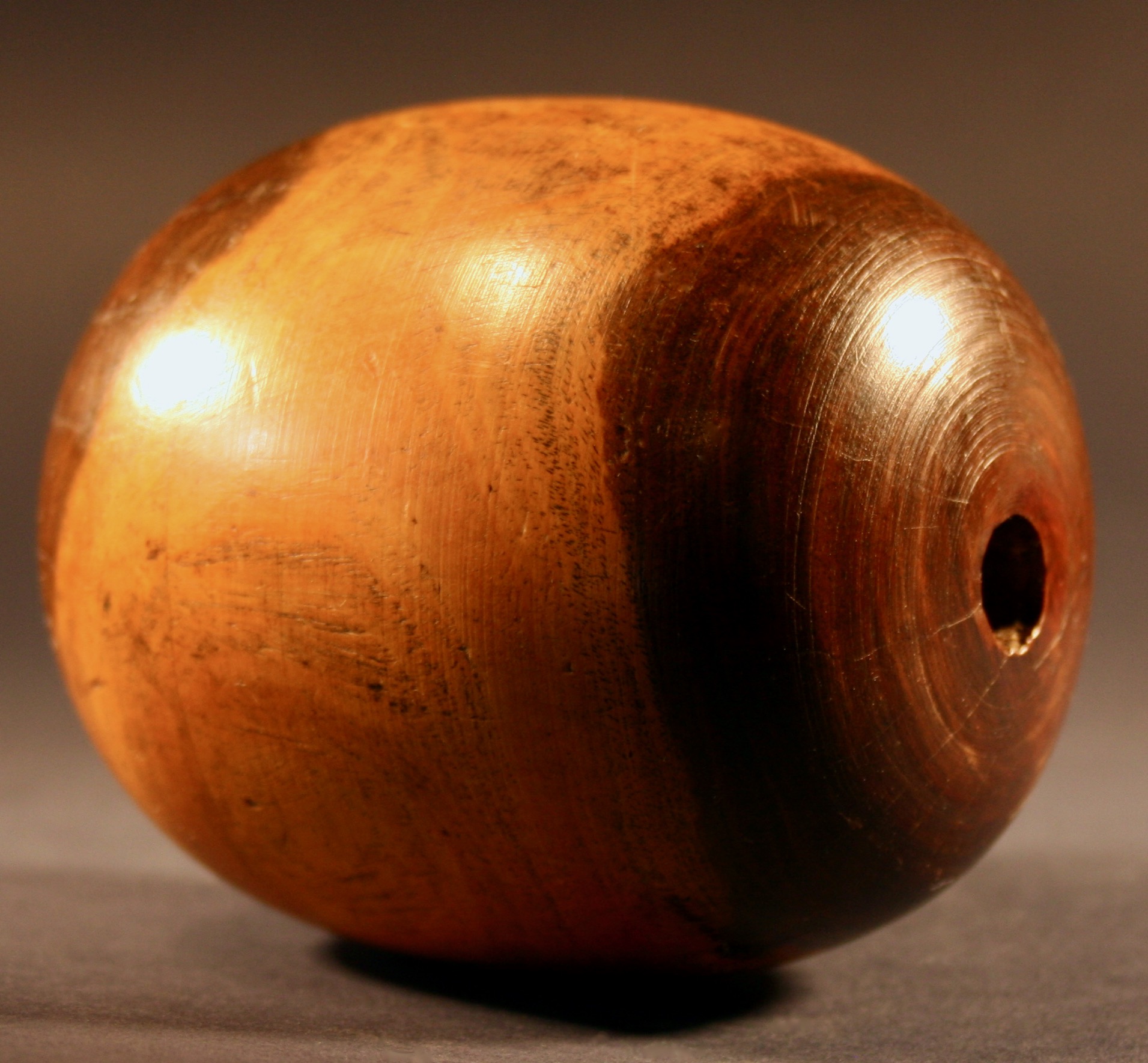 "Rare antique" Lignum Vitae machine-tooled hardwood over 100 years old. The demand for this type of wood has been increasing, making it an expensive commodity. A wonderful example of a very rare piece of hardwood. This was probably used in a loom as a tool. Very heavy very dense material. Rare woods can be as much is gold itself. This piece of wood has a wonderful tactile feel to it. These types of woods are among the most expensive type on the planet. This species of wood is mostly used for making. Tool handles, mallet heads, bearings, bushings, pulley wheels, and turned objects. Color/Appearance: Heartwood color can range from a olive to a dark greenish brown to almost black, sometimes with a reddish hue. The color tends to darken with age, especially upon exposure to light. Color of genuine Lignum Vitae tends to be darker than that of Argentine Lignum Vitae. The name Lignum Vitae is Latin, and means tree of life, or wood of life, which is derived from the tree’s many medicinal uses. Grain/Texture: Grain is interlocked, sometimes severely so. Has a very fine texture and an oily feel. Bare wood can be polished to a very fine luster due to its high natural oil content. Due to the density of the wood, cricket bails, in particular "heavy bails" used in windy conditions, are sometimes made of lignum vitae. It is also sometimes used to make lawn bowls, croquet mallets, and skittles balls. The wood also has seen widespread historical usage in mortars and pestles and for wood carvers' mallets. The belaying pins and deadeyes aboard USS Constitution and many other sailing ships were made from lignum vitae. Due to its density and natural oils, they rarely require replacement, despite the severity of typical marine weathering conditions, and also resisted jamming in their mortise holes. The sheaves of blocks on sailing vessels were made of lignum vitae until the introduction of modern synthetics. Rot Resistance: Lignum Vitae is reported to be very durable for outdoor use and is also very resistant to insect attack. Workability: Lignum Vitae has a tendency to skip over-top jointer cutters on account of its extremely high density, and very light passes are recommended. Lignum Vitae will also dull cutters, and overall is considered quite difficult to work. Also, due to its high oil content and density, it’s very difficult to get a strong and reliable glue joint. However, Lignum Vitae is an exceptional wood for turning on the lathe, and finishes well. Prices for genuine Lignum Vitae are accordingly very high: Lignum Vitae is typically sold by the pound, (instead of the more common board-foot measurement), and since it is the heaviest wood in the world, this also makes it considerably expensive. Lignum Vitae is regarded by most to be both the heaviest and hardest wood in the world. Its durability in submerged or ground-contact applications is also exceptional. Lignum Vitae has been used for propeller shaft bearings on ships, and its natural oils provide self-lubrication that gives the wood excellent wear resistance. Unfortunately, Lignum Vitae has been exploited to the brink of extinction, and is now an endangered species. Verawood—a related wood species with similar working properties and characteristics—is commonly used as a substitute, and is sometimes called Argentine Lignum Vitae. Yet even this species (Bulnesia sarmientoi) has been included in CITES Appendix III, though it is not as restrictive as Appendix II where Lignum Vitae is found. Though Verawood is in a different Genus than Lignum Vitae, (Bulnesia and Guaiacum, respectively) both genera are biologically classified in the same Family: Zygophyllaceae. Both woods are extremely hard, heavy, oily, and have a feathered grain pattern with a distinct brownish olive color.