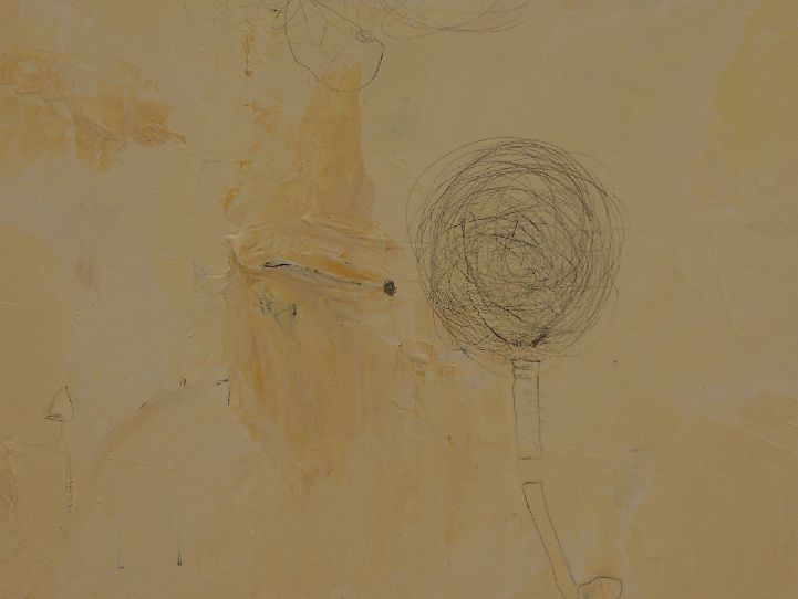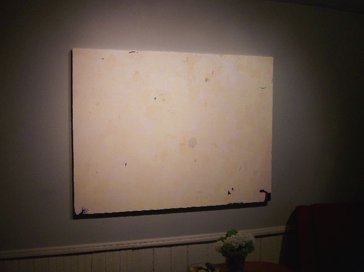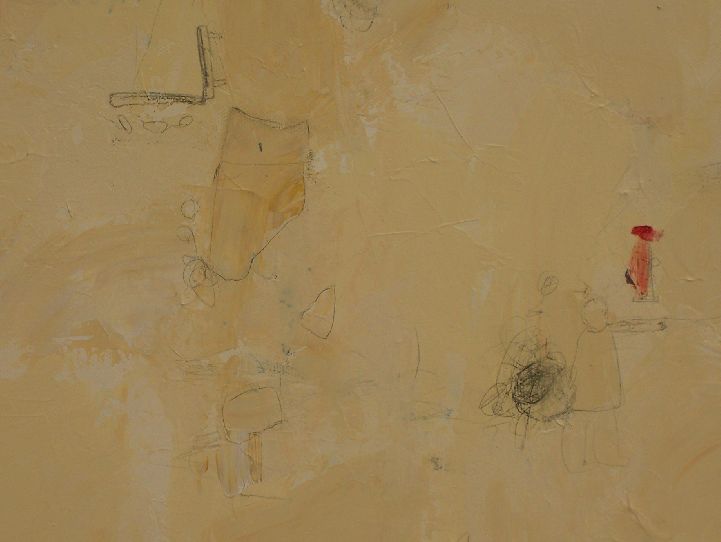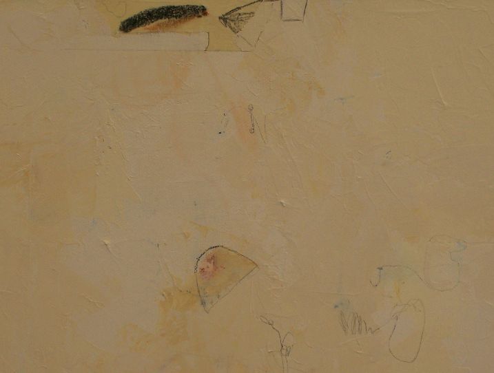 “F You Charlie” by artist John McLaughlin, also known as drawinghermit. This is a mixed media painting/drawing on a premium stretched canvas. First I used acrylic paint to establish an ivory/beige background base color, then used colored pencils, crayon and oil paint stick to make childlike drawings, scribbles and forms, adding and painting over during a period of days, weeks, and months. Some of the depicted objects are representational and some are purely abstract gestures. To me F you Charlie represents one of these walls that has witnessed the passage of time. In past years I worked in various large decrepit warehouses. In these old buildings, I was always fascinated by the walls that displayed their various marks, scratches, stains, written words and numerous thick layers of paint. Like a palimpsest , the walls with their layers of paint left some previous marks to show through, that to me resembled unusual signs and symbols. There always seemed to be the ubiquitous “fuck you charlie” written somewhereon the wall. (I didn’t know if it was a particular Charlie or included them all). I think it was the catch phrase of the day, like an earlier time of “kilroy was here.” I felt this painting was done when the entire surface somehow looked right to me, but it may really never be finished. This painting was in the Best of Michigan: Michigan Fine Art Competition that was displayed at the Birmingham Bloomfield Art Center in October 2009.