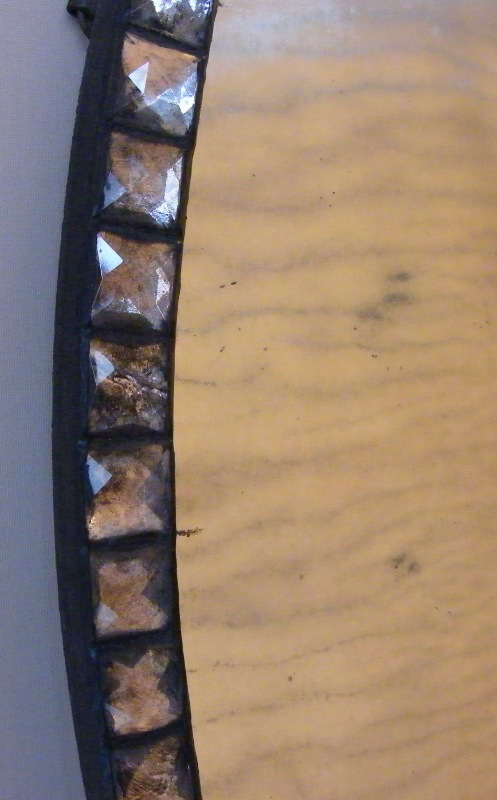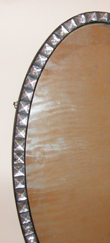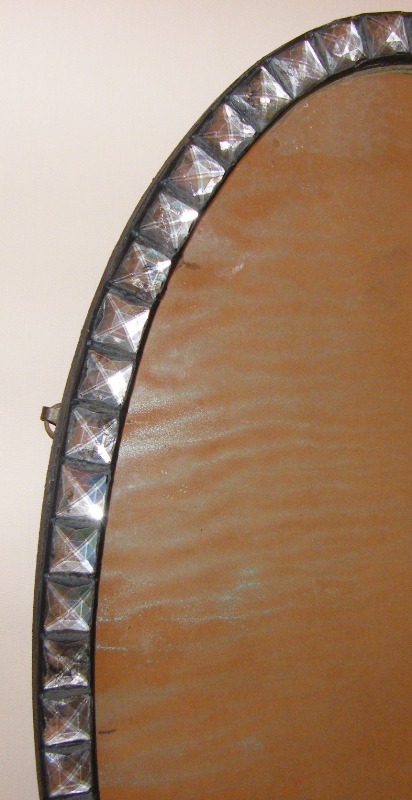 Rare Irish Oval Wall Mirror, Nineteenth Century. The oval frame with square faceted hand cut crystal surround, enclosing a plain mirror plate. Height: 28.75" (73cm). Width: 17" (43cm). Condition: All glass pieces are original and are not chipped, back boards seem original, plate mirror images are shown not masked.