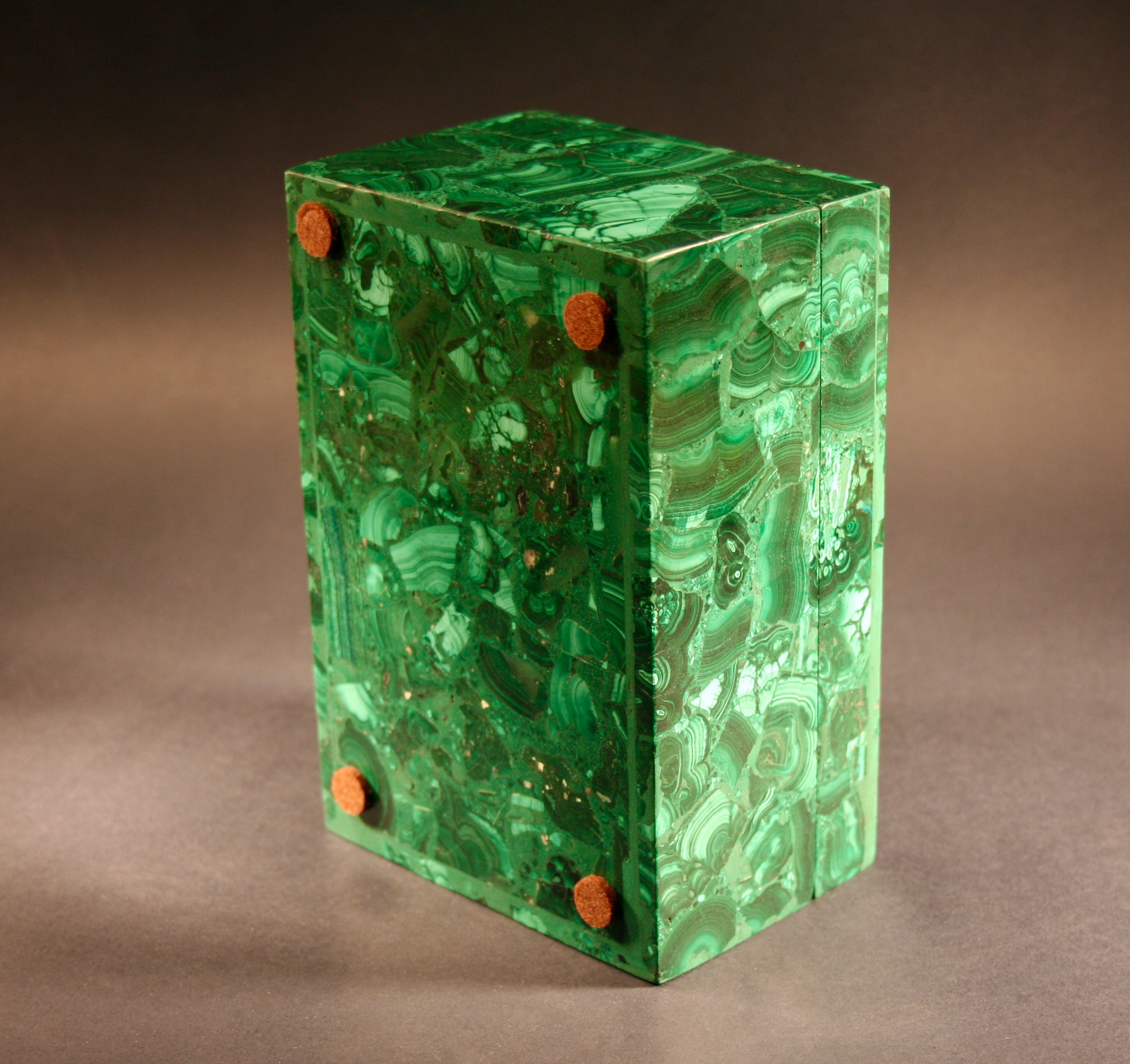 Title: Large Handmade Malachite Rectangle Decorative Stone Box