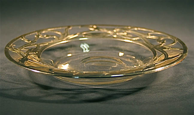 SILVER OVERLAY GLASS Silver has been used to decorate bronze, copper, and earthenware for ages. Silver on glass, however, started to come into its own a little over a century ago. In 1889 Oscar Pierre Erard of Birmingham, England, developed an effective method of electroplating silver on glass and porcelain. Although beautiful on the outside, it shared an important shorcoming with its predecessors. The reverse side of the silver design, the side next to the glass would tarnish and turn dark. In clear plates, bowls, dishes and glasses this unsightly result was hardly condusive to a hearty appetite. In 1893, an American from New Jersey by the name of John H. Scharling patented a method no less simple or beautiful than Erard's creation, but with a distinct advantage. The reverse side of the design was snow white and it stayed that way indefinitely. Like Erard's method, Sharling's designs utilized electroplating. He shared his new process with all, both domestic and European. By 1895, the Czechs, Italians, French, English and Austrians were producing exciting glassware with sterling deposit and overlay.