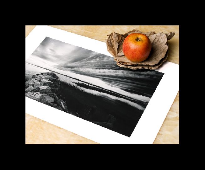 Converge/Collide by artist Martin Nichols: Here is a limited edition print of a late summer evening at the abandoned log-booming grounds at the mouth of Wilson Creek on Canada's Sunshine Coast. Photographer Martin Nichols, originally from London, England, has enjoyed a passionate relationship with the West Coast of Canada since moving there in 1982, and is repeatedly compelled and challenged to incorporate its swirling energy in his art. Mr Nichols has been a graphic designer for 30 years, and credits this discipline with helping him tremendously with his photographic composition. This print is one of a limited edition of ten, and is one of four in the Rare Coast Series. The print is 17" x 10" with a 2" white border. The piece is printed with Ultrachrome inks on 15.4 mil 300 gsm bright white, smooth matte Optica One paper. This paper is archival and acid-free and the inks are Epson Ultrachrome, giving beautiful deep rich blacks. Both ink and paper are guaranteed to hold for more than 100 years.
