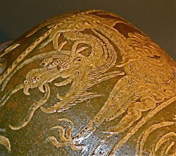 Title: Handmade Chinese antique hanging dragon ceramic pottery pot jar
