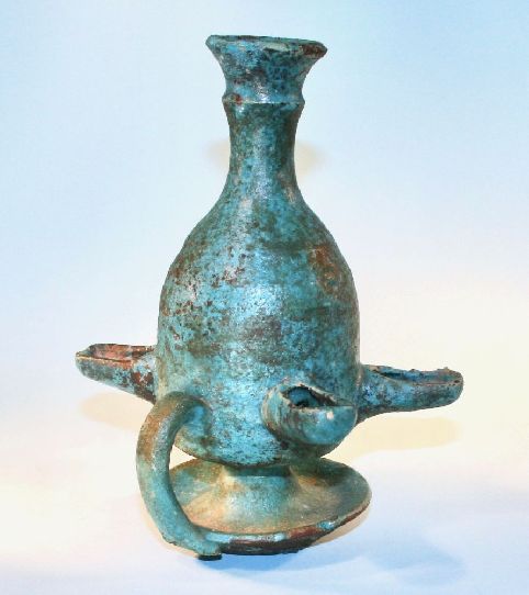 Title: Antique Ceramic Persian Glazed Stoneware Oil Lamp