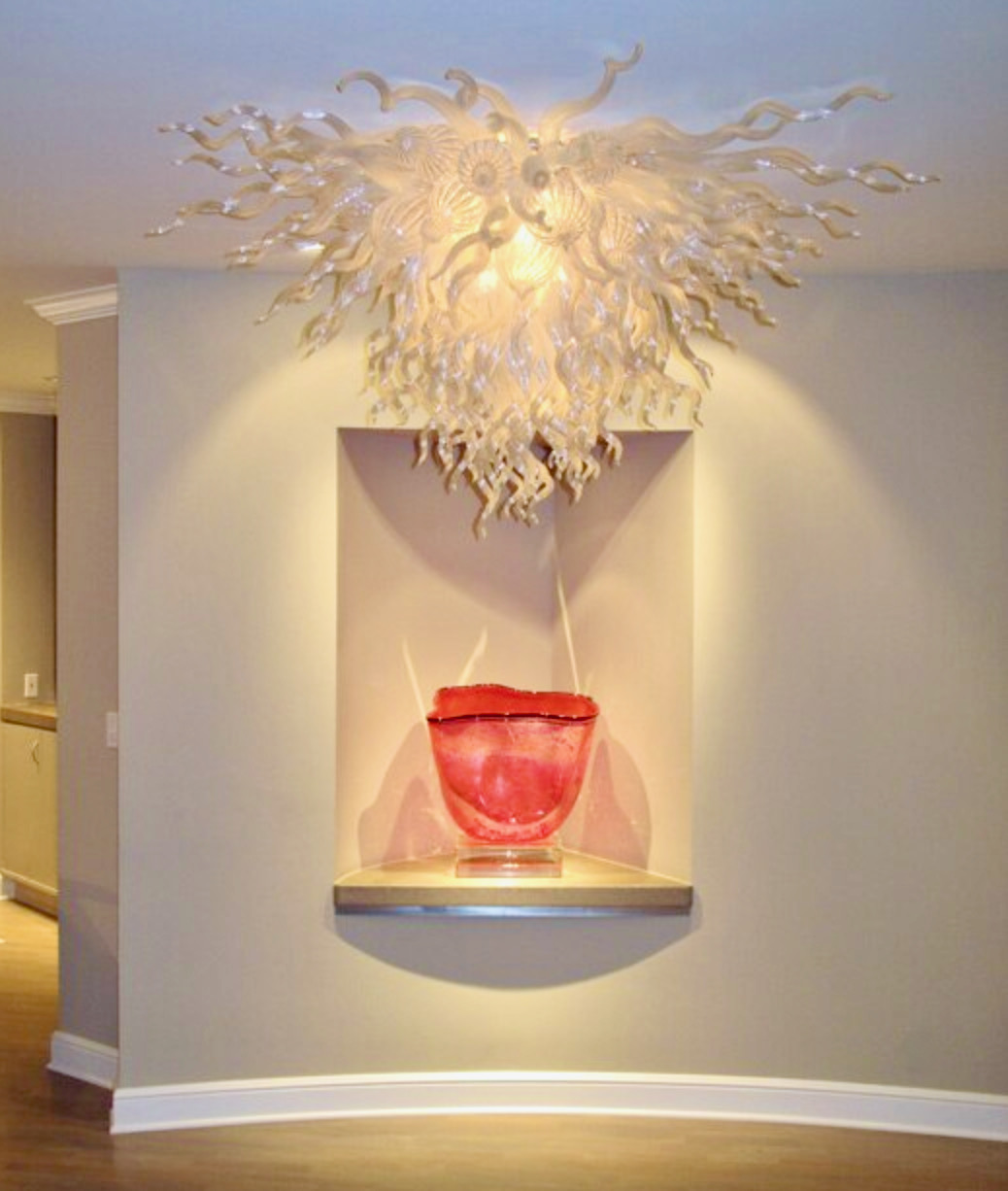 Title: Custom Handblown Glass, Asian Venetian Organic Style Chandelier