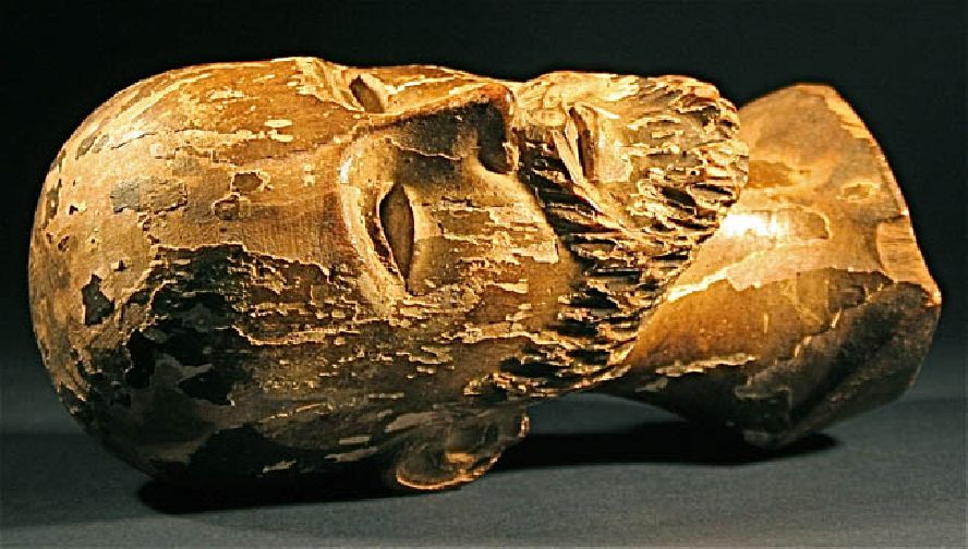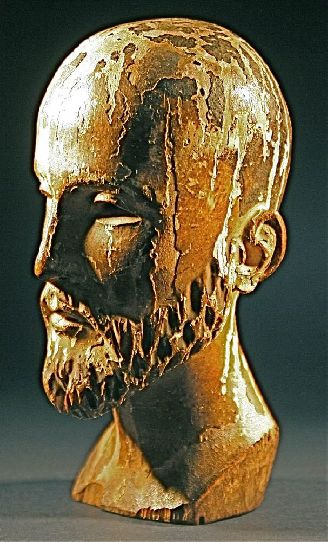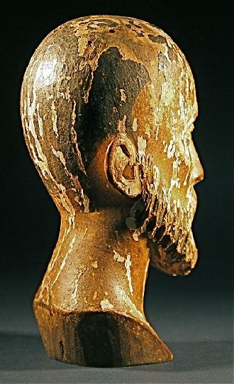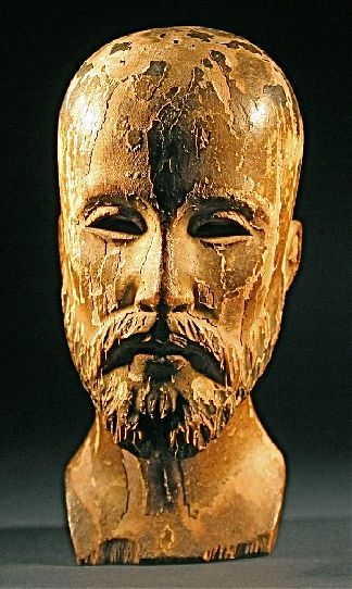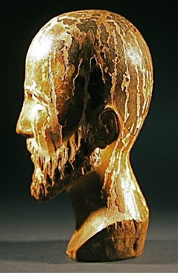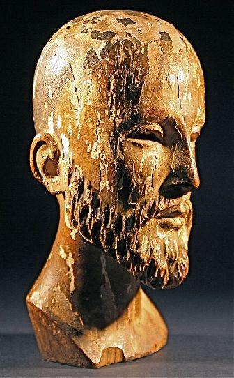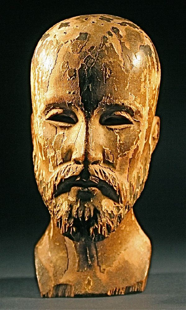 Title: Rare Polychromed Antique Wooden Head Of A Saint