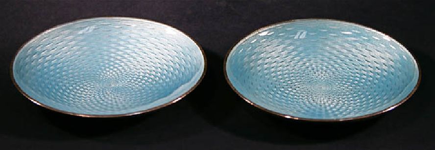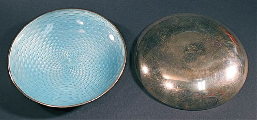Title: Two Little Antique Silver Blue Enamel Dish Plates