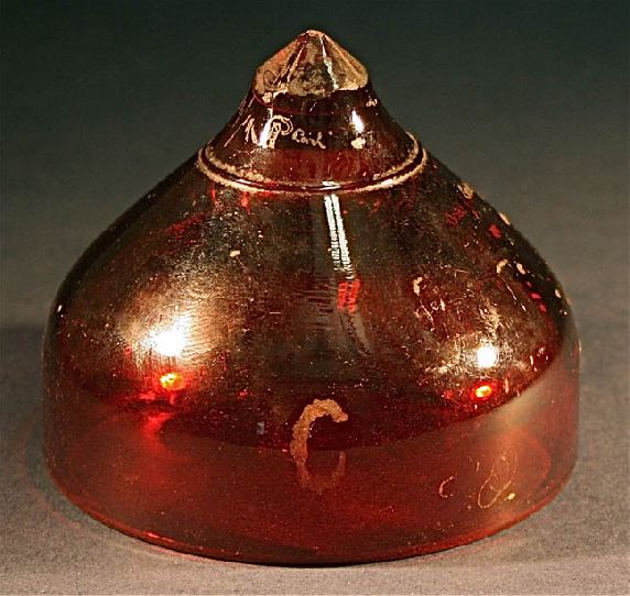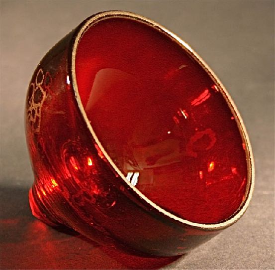 Title: Antique Watchmaker Red Glass Cover Cup Hand Etched Tool