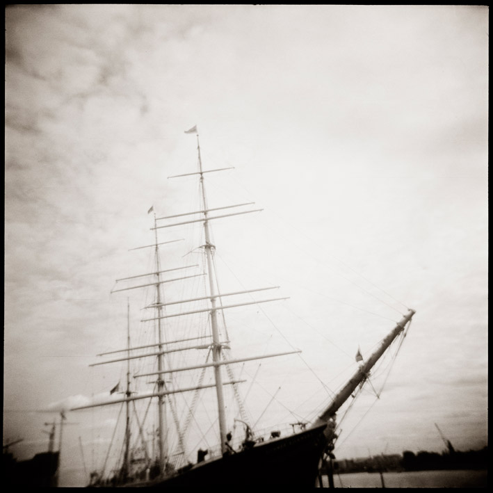 Hamburg Hafen By Artist Lucia Fischer: Signed, limited edition RA archival photographic print. Edition number 3 of 21. Image size 44 x 45 (the images is square on a top heavy white border) This is a photograph I took in Hamburg, Germany of the iconic sailing ship Rickmer Rickmers. It is part of my 'The Holga Diaries' series. A raw and gritty double take of the urban landscapes and city streets of Europe; the sights I experienced as viewed through the lens of my Holga camera on vagabond wanderings and travels. This body of work presents a series of hazy and desolate dreamscapes that evoke a sentimentality of times past and whose subjective presentation can be best described as silent, hazy and lost.