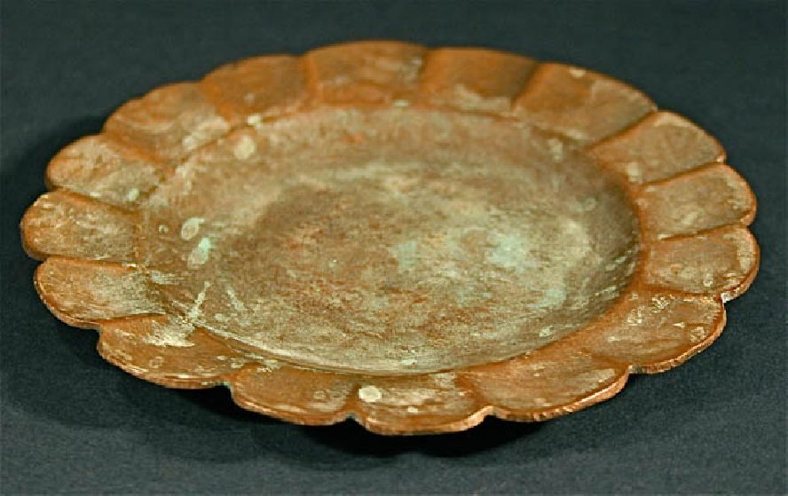 Title: Antique Hand-Hammered Arts and Crafts Copper Little flower Dish