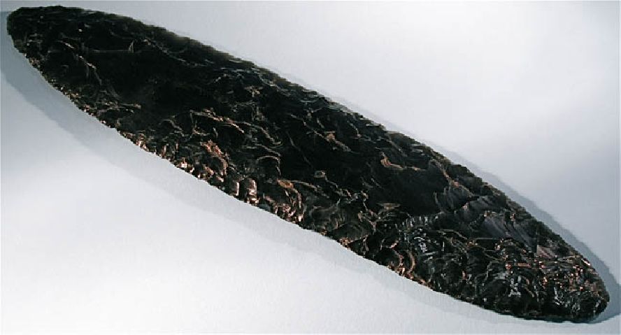 Title: A rare and very large Obsidian stone artifact spearhead