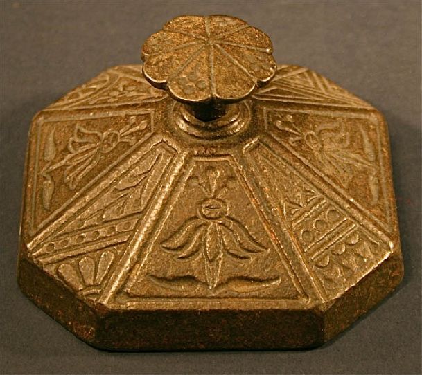 Title: Antique Art Nouveau Octagon Pressed Cast Iron Designed Paperweight
