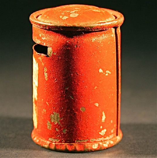 Title: Antique Post Office Red Toy Bank British Royal Mailbox Money Tin Can